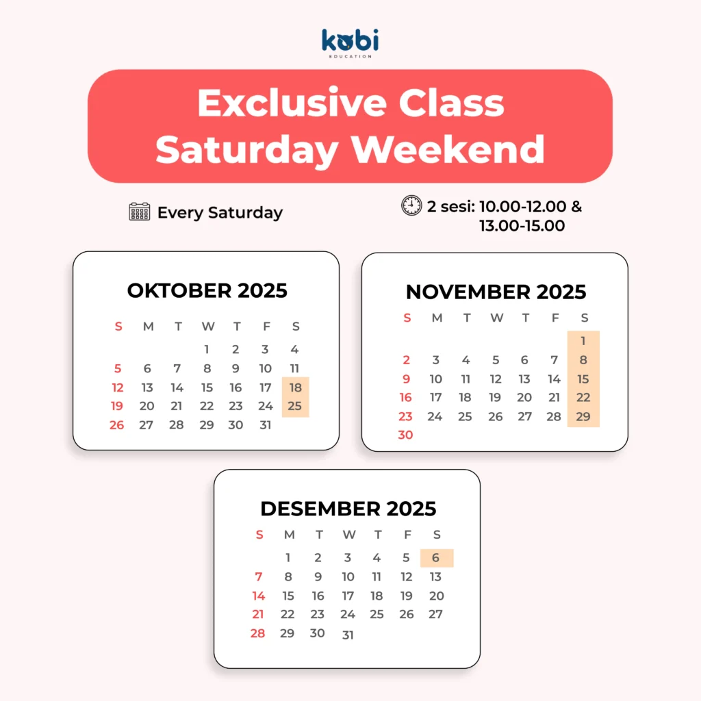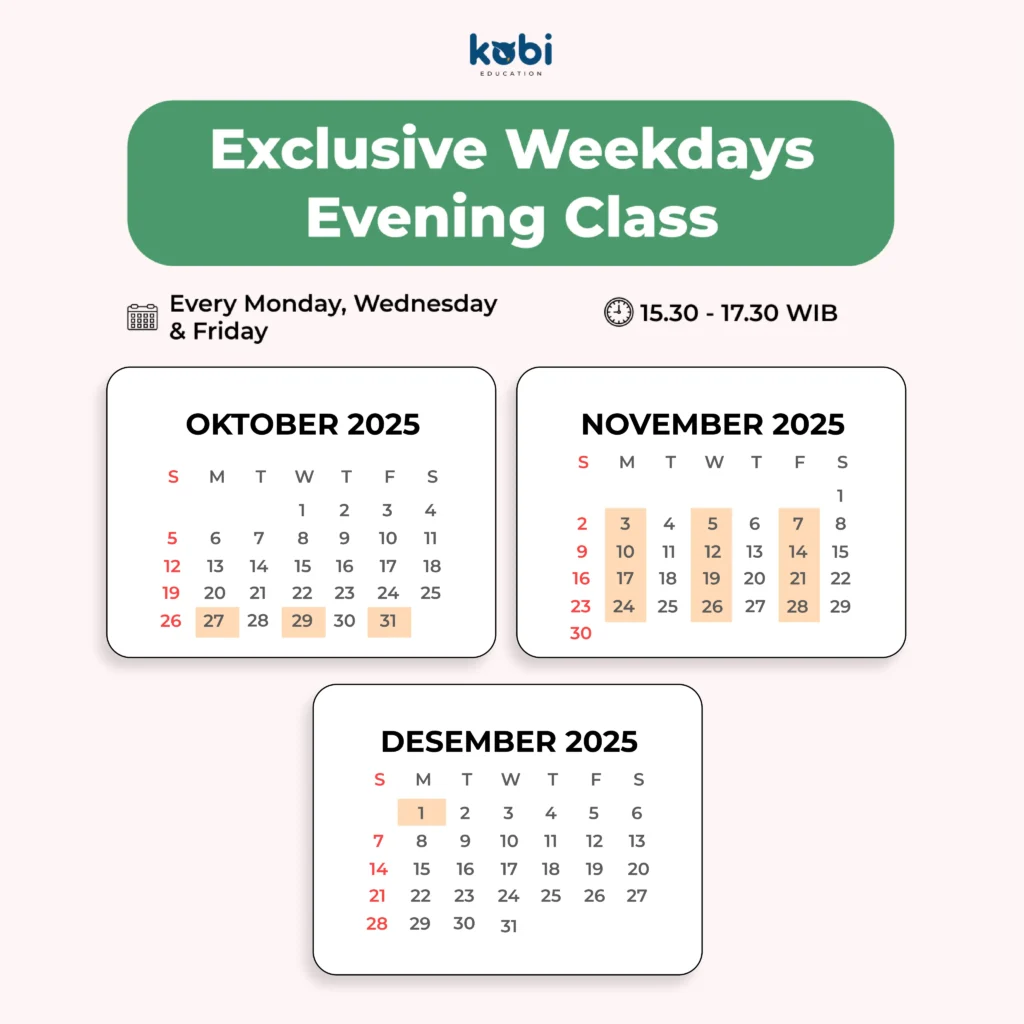 Beda banget yah Sobi, IELTS exclusive merupkan semi private class yang maksimal ada 6 siswa di setiap kelasnya, sedangkan kelas master 1 kelas berisi 20 siswa. Selain itu kelas exclusive cocok banget buat kamu yang ingin kebut skor IELTS 1,5-2 bulan aja, sedangkan kelas master 2-3 bulan. Mau tau lebih banyak tentang kelas master?