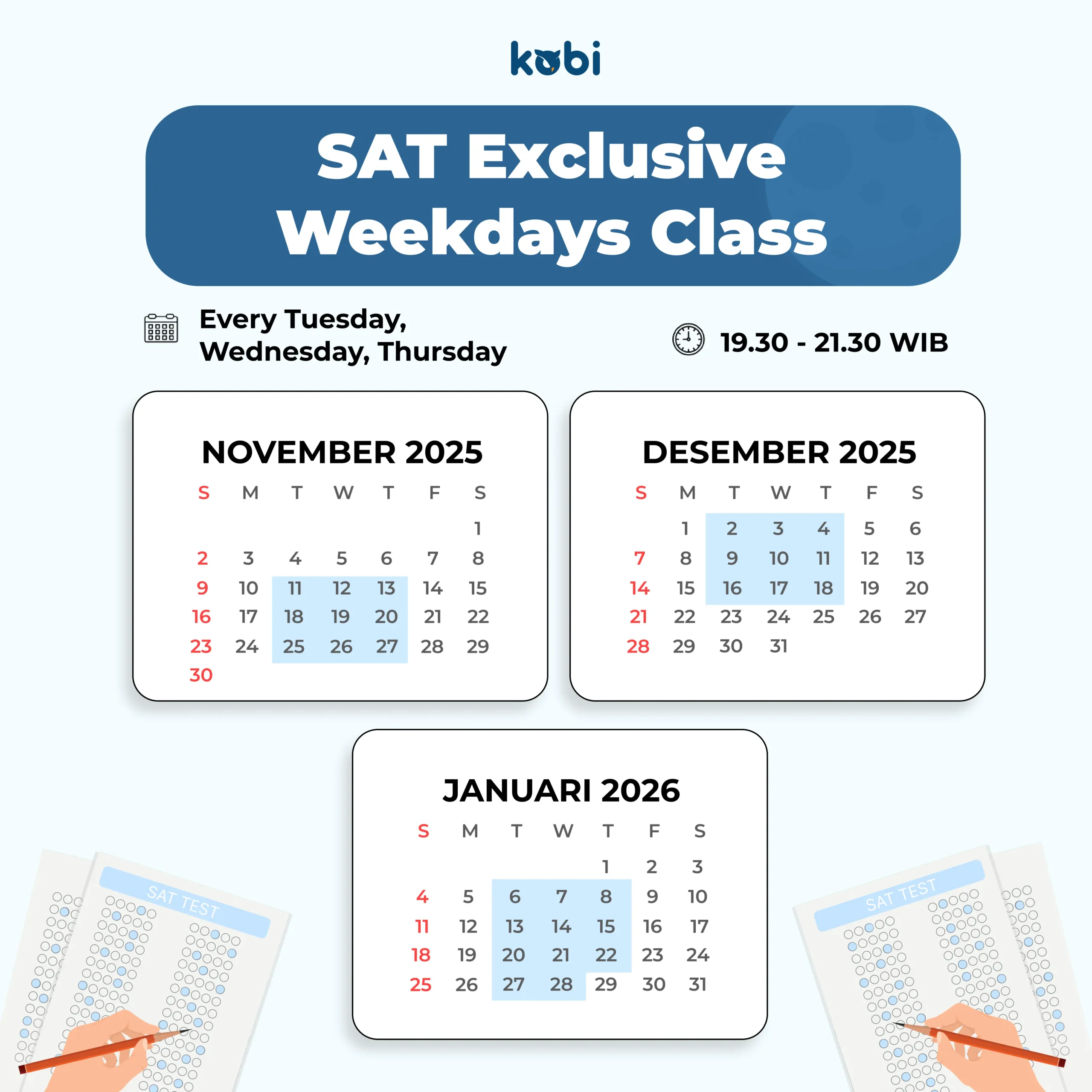 Sebaiknya mulai persiapan SAT jauh sebelum tanggal ujian yang direncanakan. Biar kamu cukup waktu untuk mempelajari materi, berlatih, dan memperbaiki kelemahan.