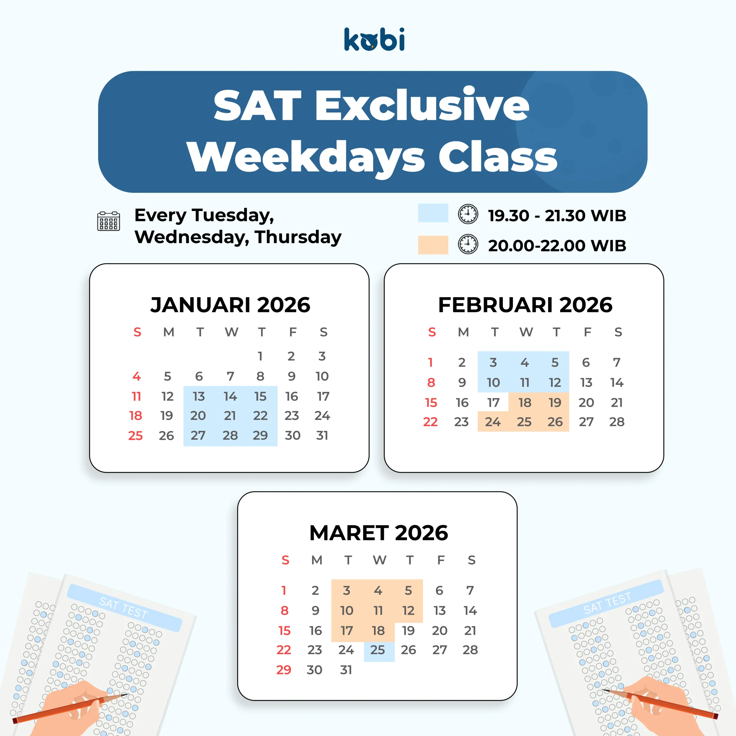 Sebaiknya mulai persiapan SAT jauh sebelum tanggal ujian yang direncanakan. Biar kamu cukup waktu untuk mempelajari materi, berlatih, dan memperbaiki kelemahan.