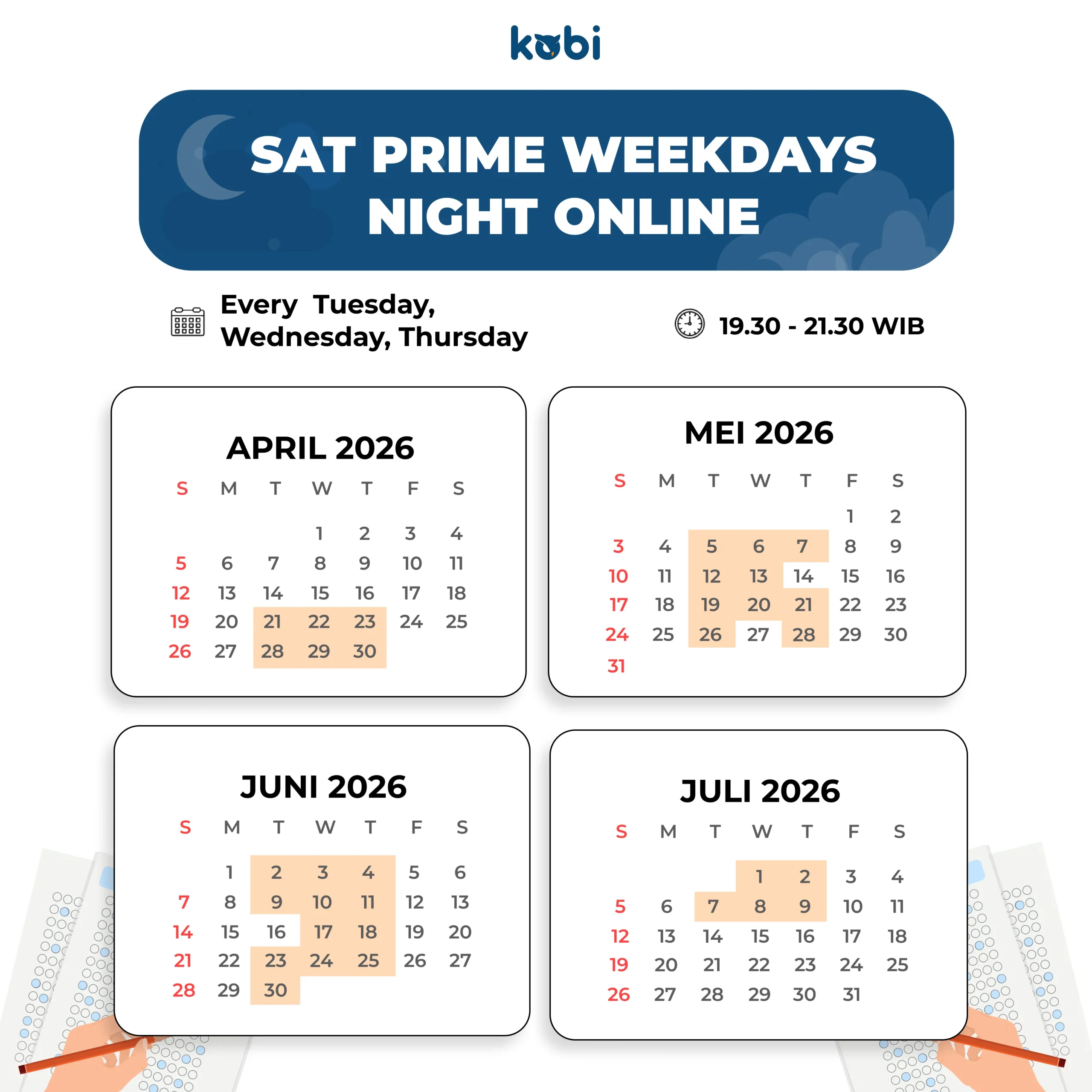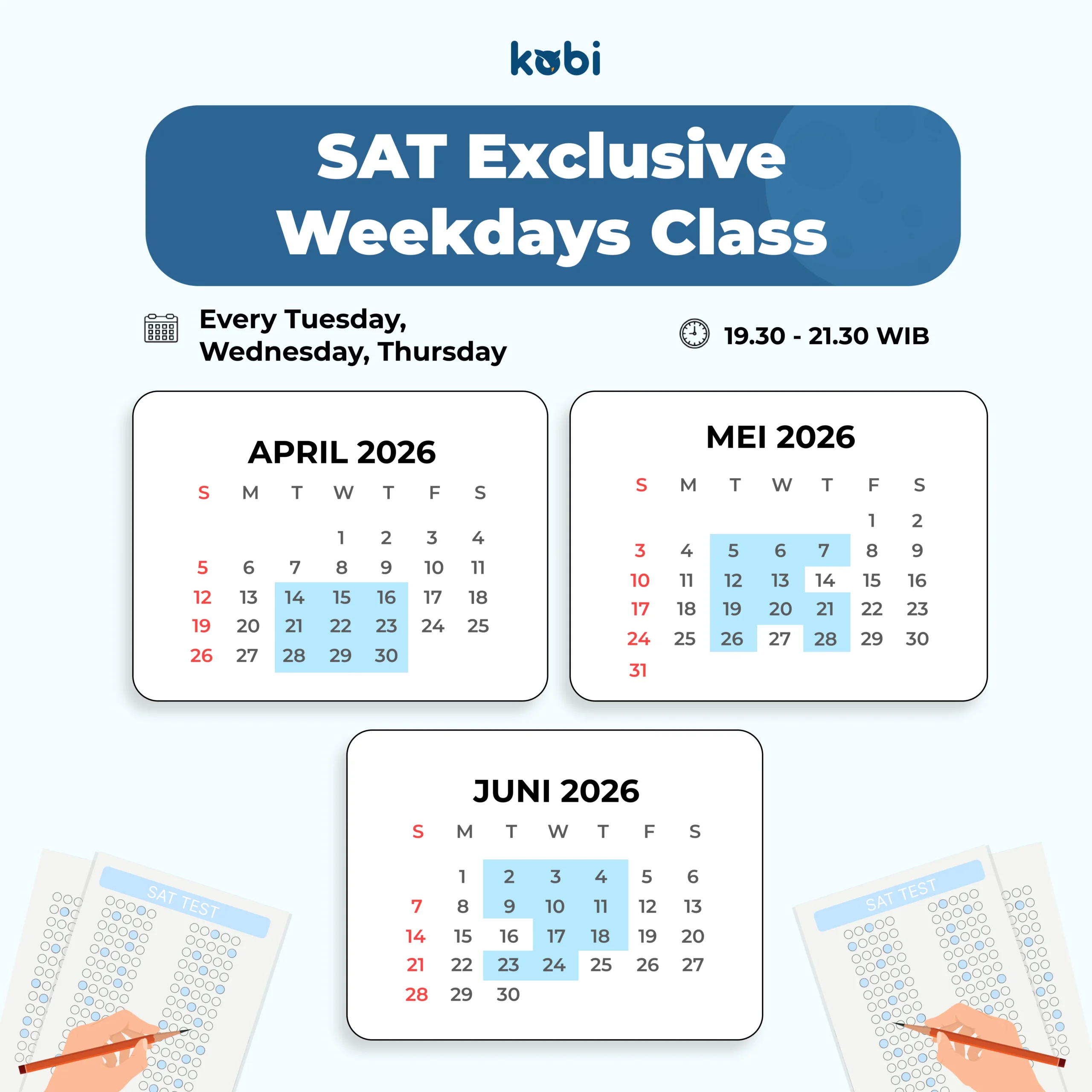 • Biar makin mateng persiapannya, join SAT Preparation Class di Kobi Education