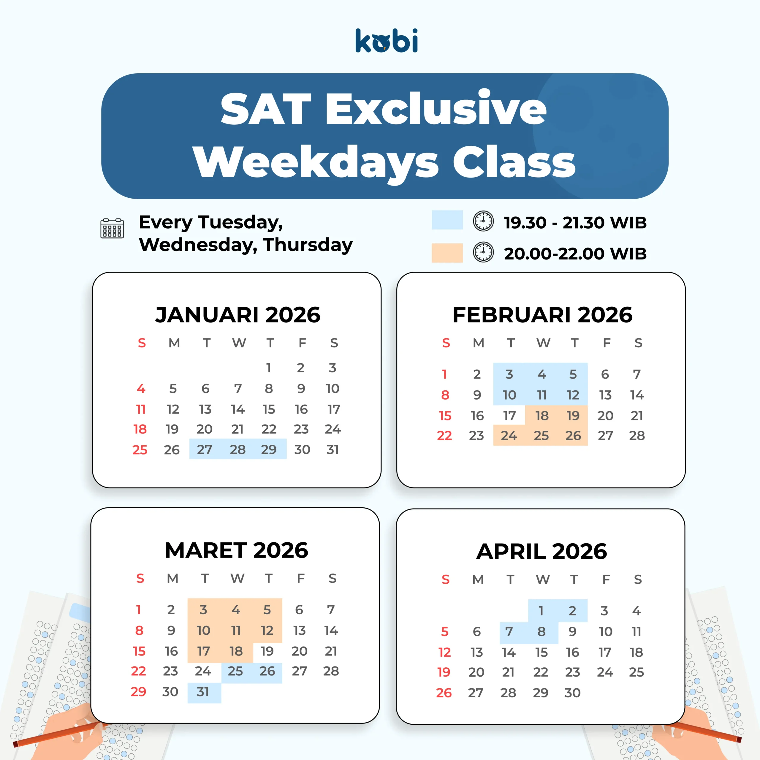 Sebaiknya mulai persiapan SAT jauh sebelum tanggal ujian yang direncanakan. Biar kamu cukup waktu untuk mempelajari materi, berlatih, dan memperbaiki kelemahan.